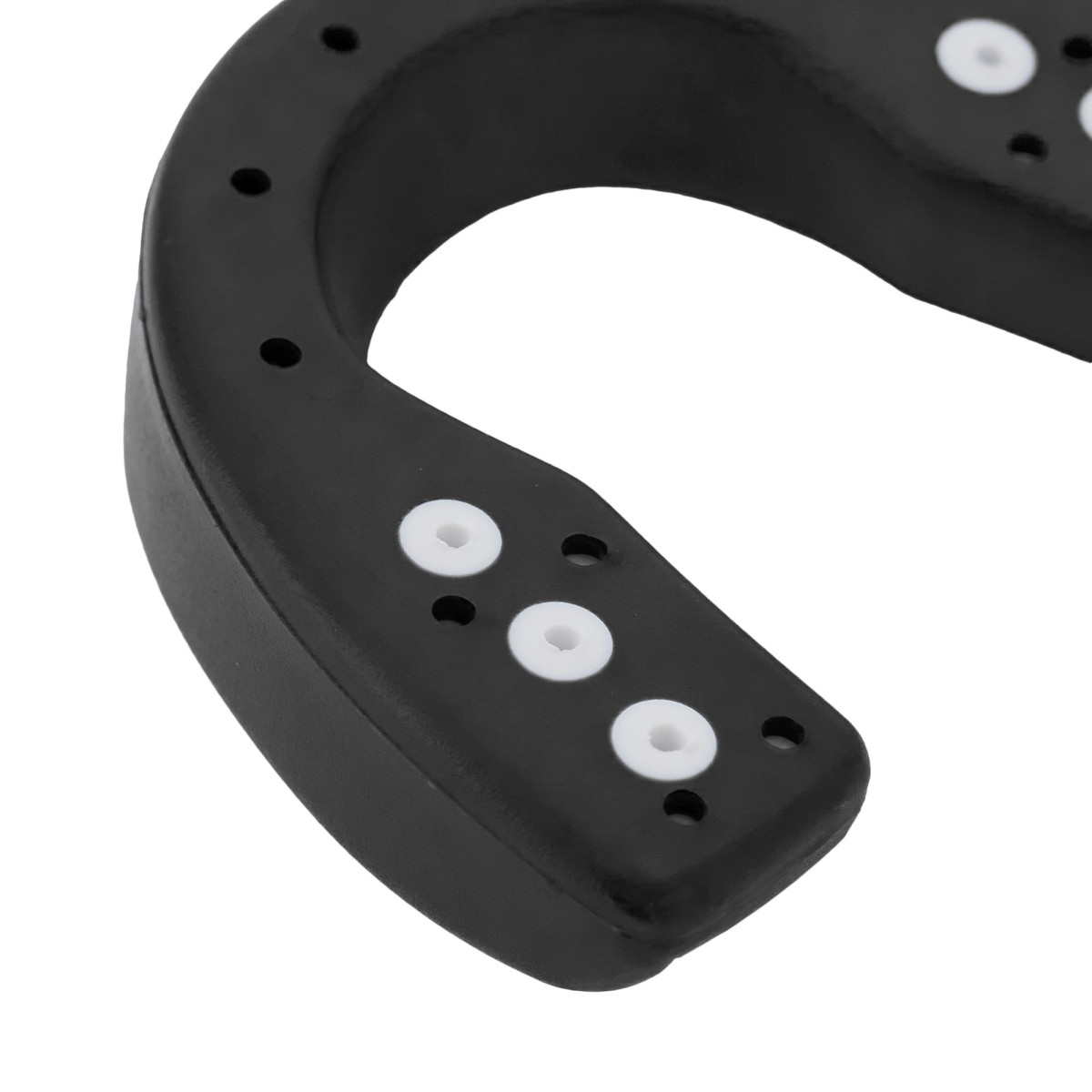 Mondguard ontworpen om bescherming en comfort te bieden tijdens sportactiviteiten. Biedt een robuuste dekking met een dual-layer structuur voor verbeterde veiligheid. Openingen vergemakkelijken een betere speeksel en laten gemakkelijk ademhaling en drinken toe zonder dat ze de mondbeschermer hoeven te verwijderen. Ideaal voor contactsporten.